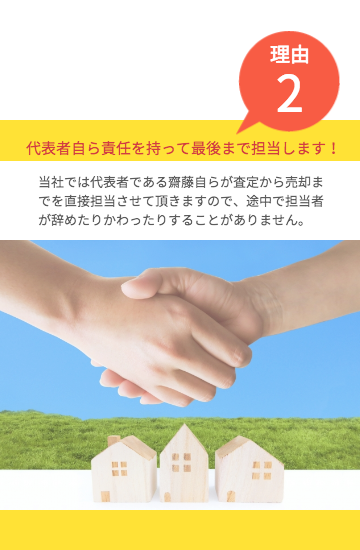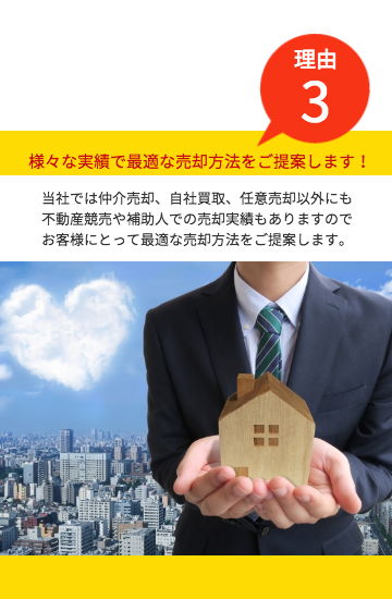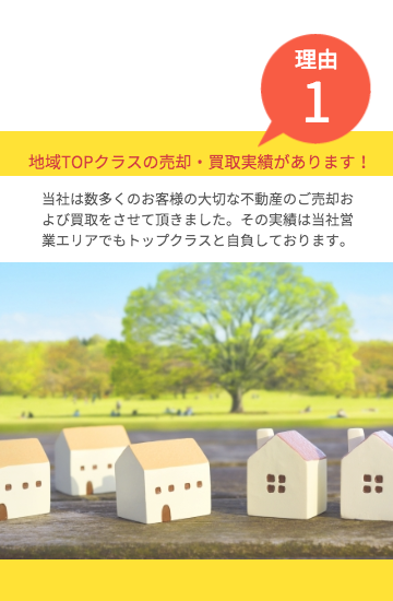 お客様がご所有されている大切な資産である不動産を売却するにあたり、お客様のご都合やご要望に合うようにできるだけ高く・できるだけ早く売却できる方法をご提案・販売活動・売却させて頂くことが当社の使命と考えております。