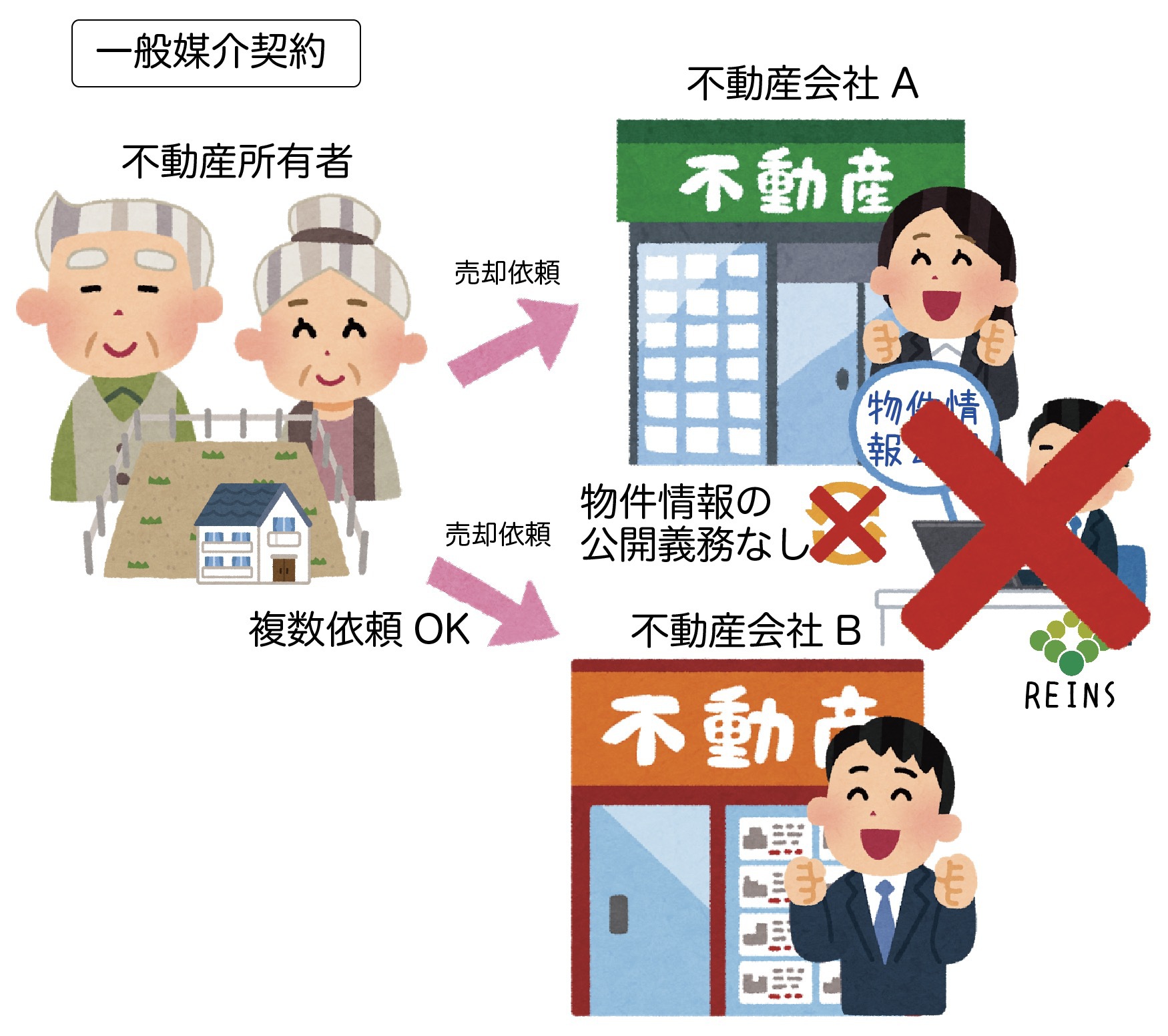 この方法は多数の不動産屋に重ねて売却の依頼が出来る方法です。