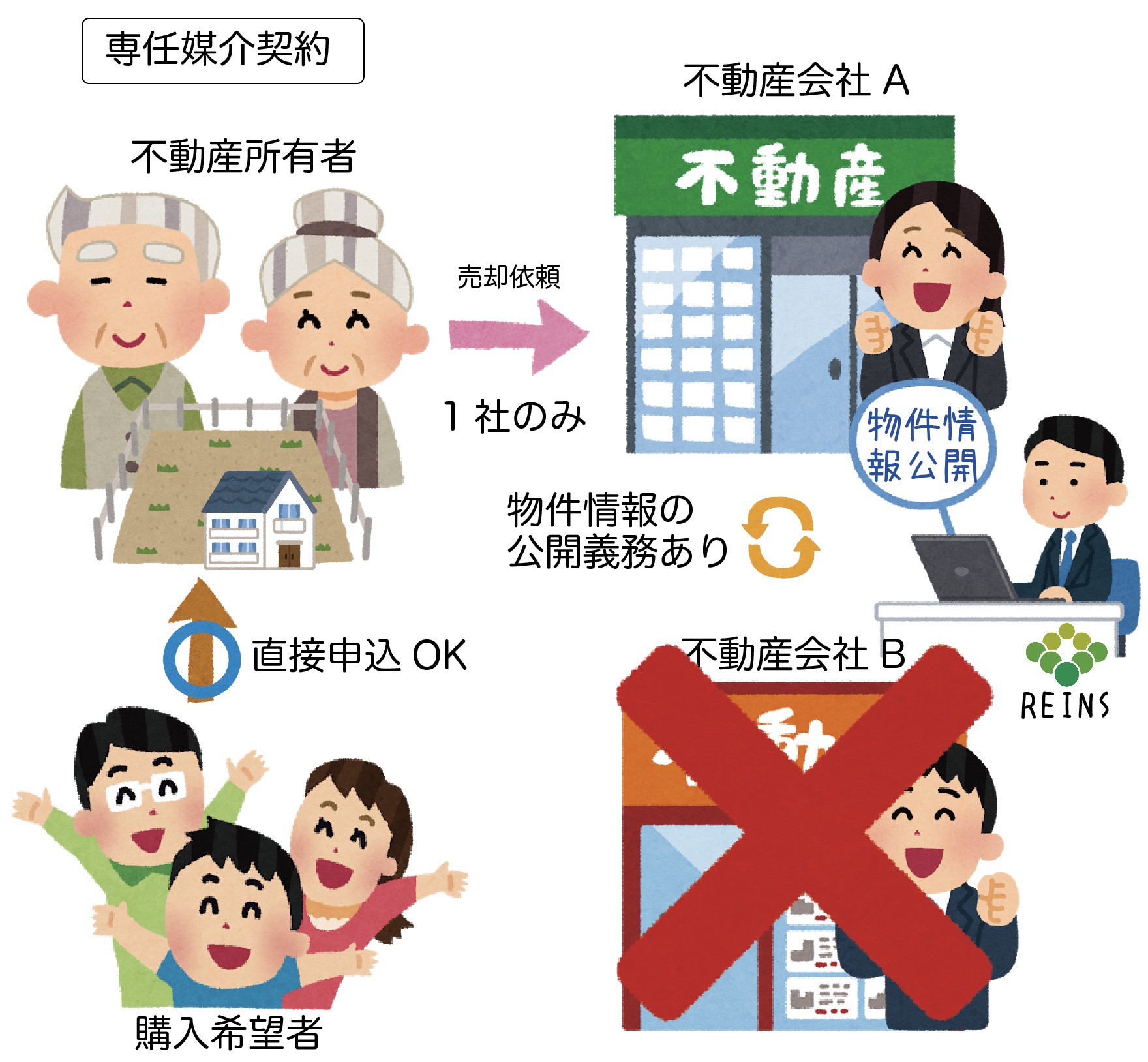 この方法は一社の不動産業者のみに依頼出来る方法ですが、ご自身で見つけて来たお客様との契約は直接出来る方法です。