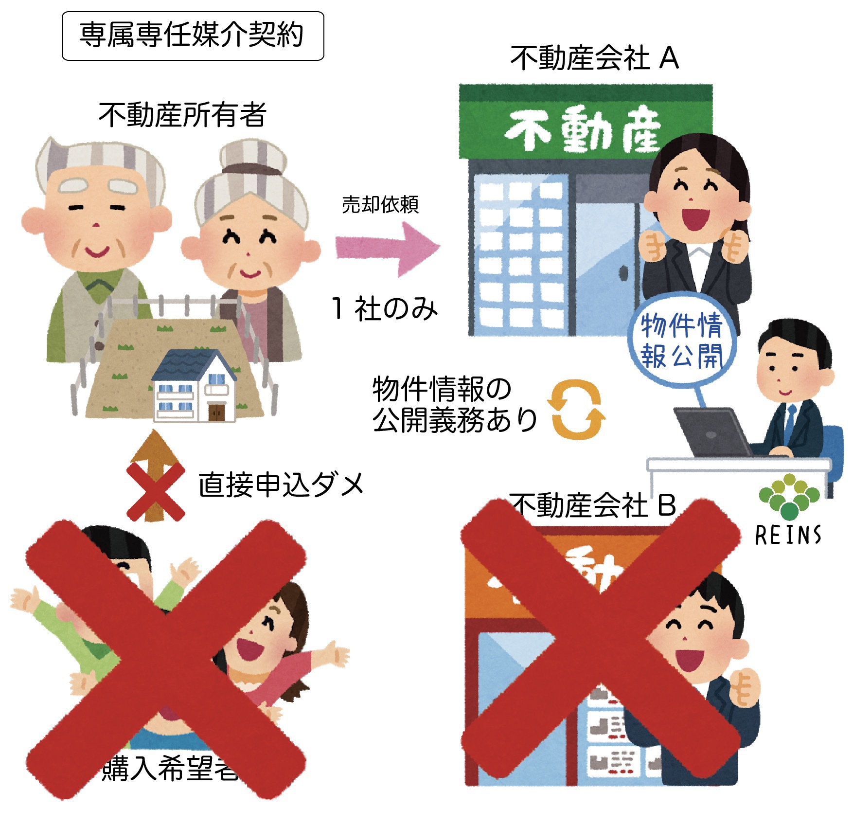 では、なにが問題か?。。そうです!売主様の売却機会を制限してしまうのです。(もしかしたら、自社ではお客様がいない場合でも他社で探しているお客様がいるかもしれませんが、他社が物件情報を知る機会が無くなってしまうのです)